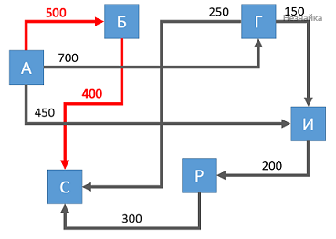 Маршрут "Алмазный-Изумрудный"(450) + "Гранитный-Изумрудный"(150 в обратную сторону от Изумрудного до Гранитного) + "Гранитный-Сапфировый"(250) = итого 850.