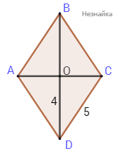 Найдите площадь ромба ABCD (в см2), если известно, что CD = 5, а BD = 8 см.
